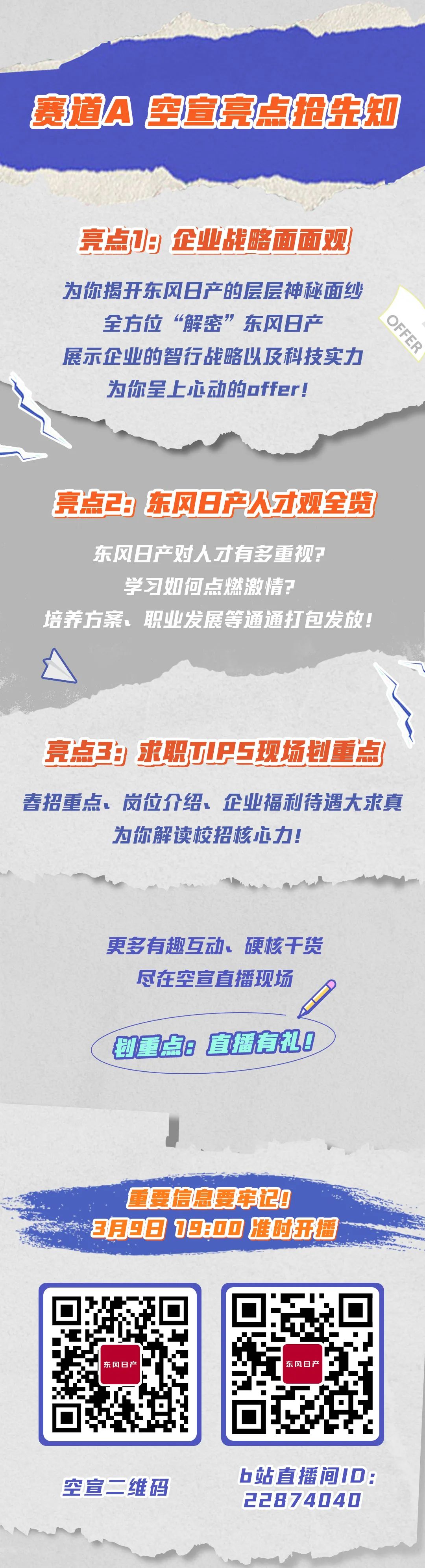 东风日产2022春招空中宣讲会将于3月9日(明天)晚上19点正式上线啦!!全面解读2022校招流程、岗位需求、应聘要求,更有丰富神秘的礼品在等你!加入东风日产,广阔天地,未来快意驰骋,即刻启程,共赴造梦之旅!请锁定空宣链接:https://xjh.zhaopin.com/show/7422我们相约周三晚上19点!欢迎网申:https://www.dongfeng-nissan.com.cn/about/recruit/campus